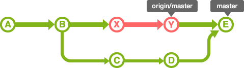 origin/master인 remote repository의 상태는 X에서 Y까지