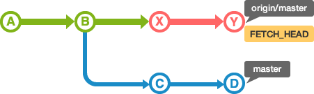 이때 만약 내 local에서 작업한 C, D와 remote의 X,Y를 merge(병합)해서
